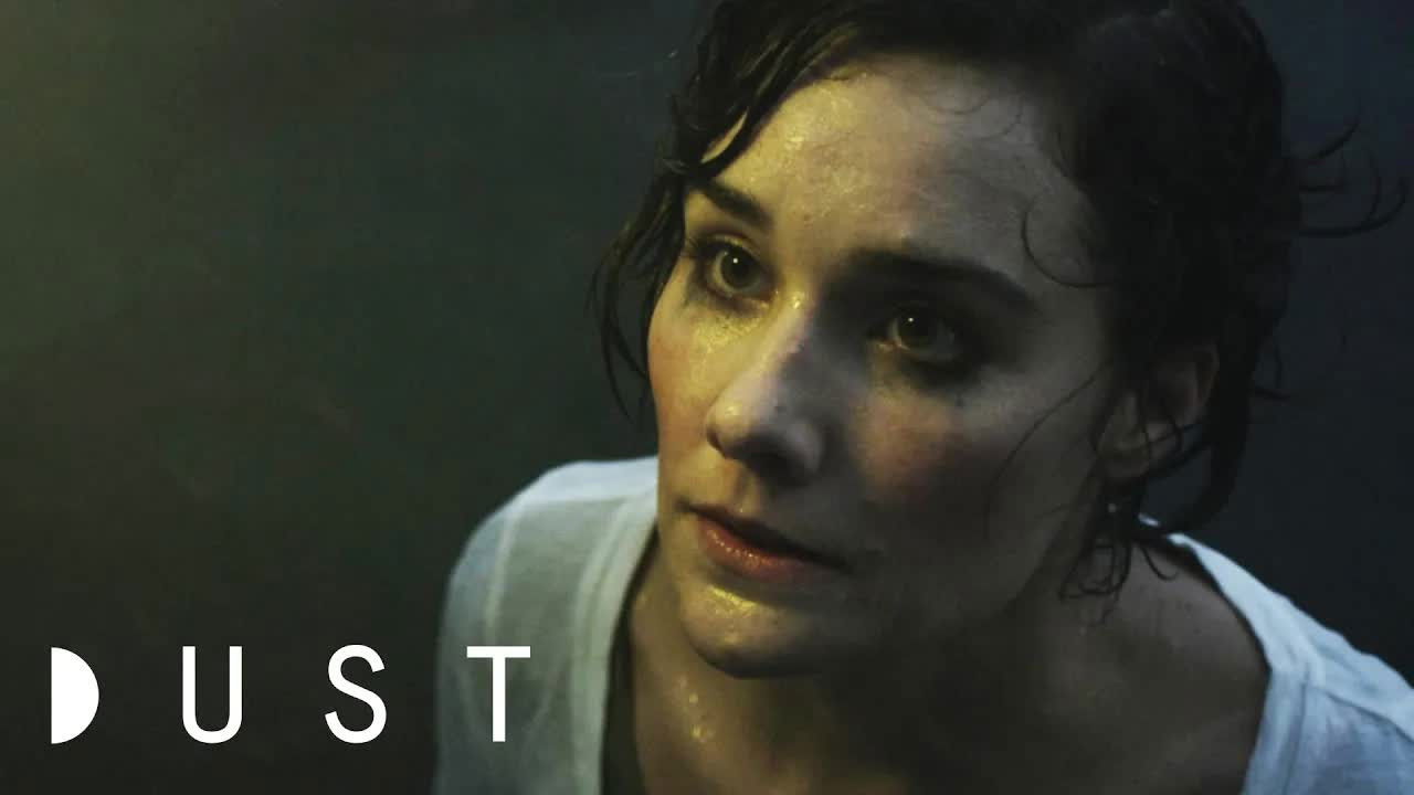 A young woman tries to seek shelter as those around her float inexplicably into the night sky.