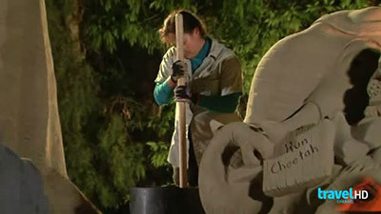The team builds an animal-theme sculpture for the San Diego Zoo Safari Park and one artist gets injured.