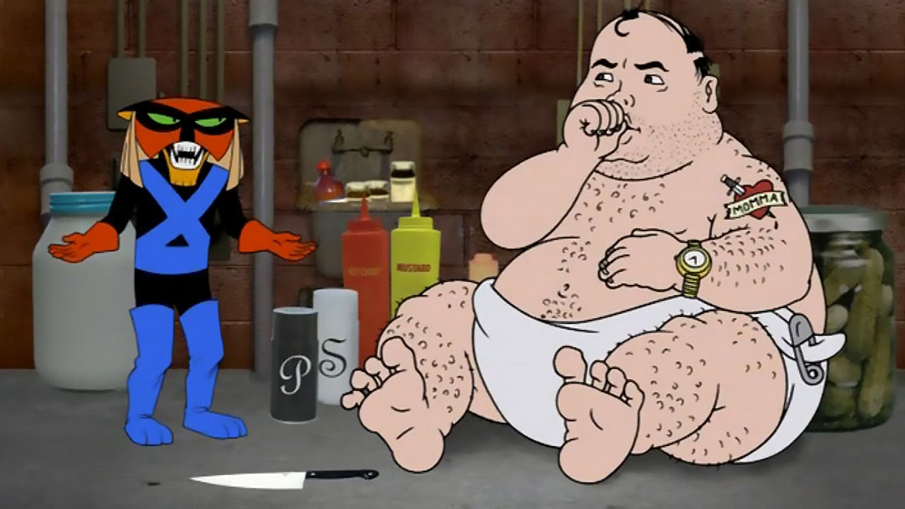 Brak, Mom, Dad and Thunderclese have been inivited over to dinner at the neighbor's house. The neighbor include Franklin (A nervous dad whose nose always seems to be growing) Rhodna (A mother who lives in a steel box that keeps talking about everyone's judgement) and the son (A big fat guy that looks like a baby that can barley move around).